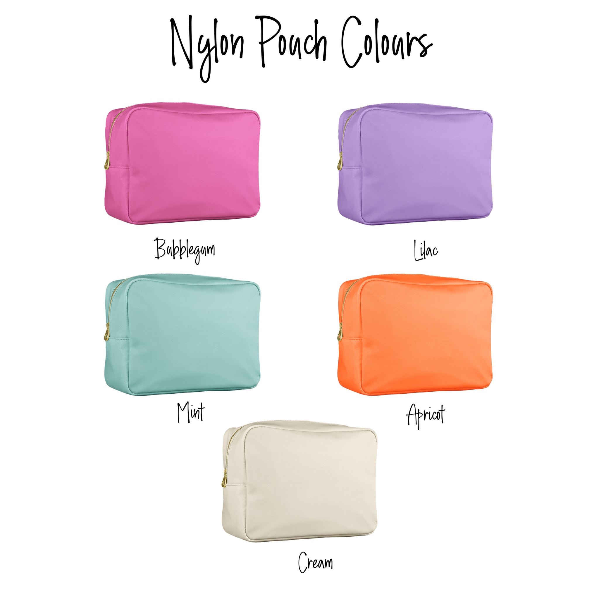 Stay stylish & organised with our durable nylon accessory pouches, perfect as a statement clutch bag or for storing makeup, toiletries, stationary, travel essentials, tech accessories (or just about anything!)