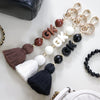 Featuring classic coloured bubblegum beads, gold spacers, seed beads & chunky initials - all finished off with a fluffy matching tassel & gold hardware.