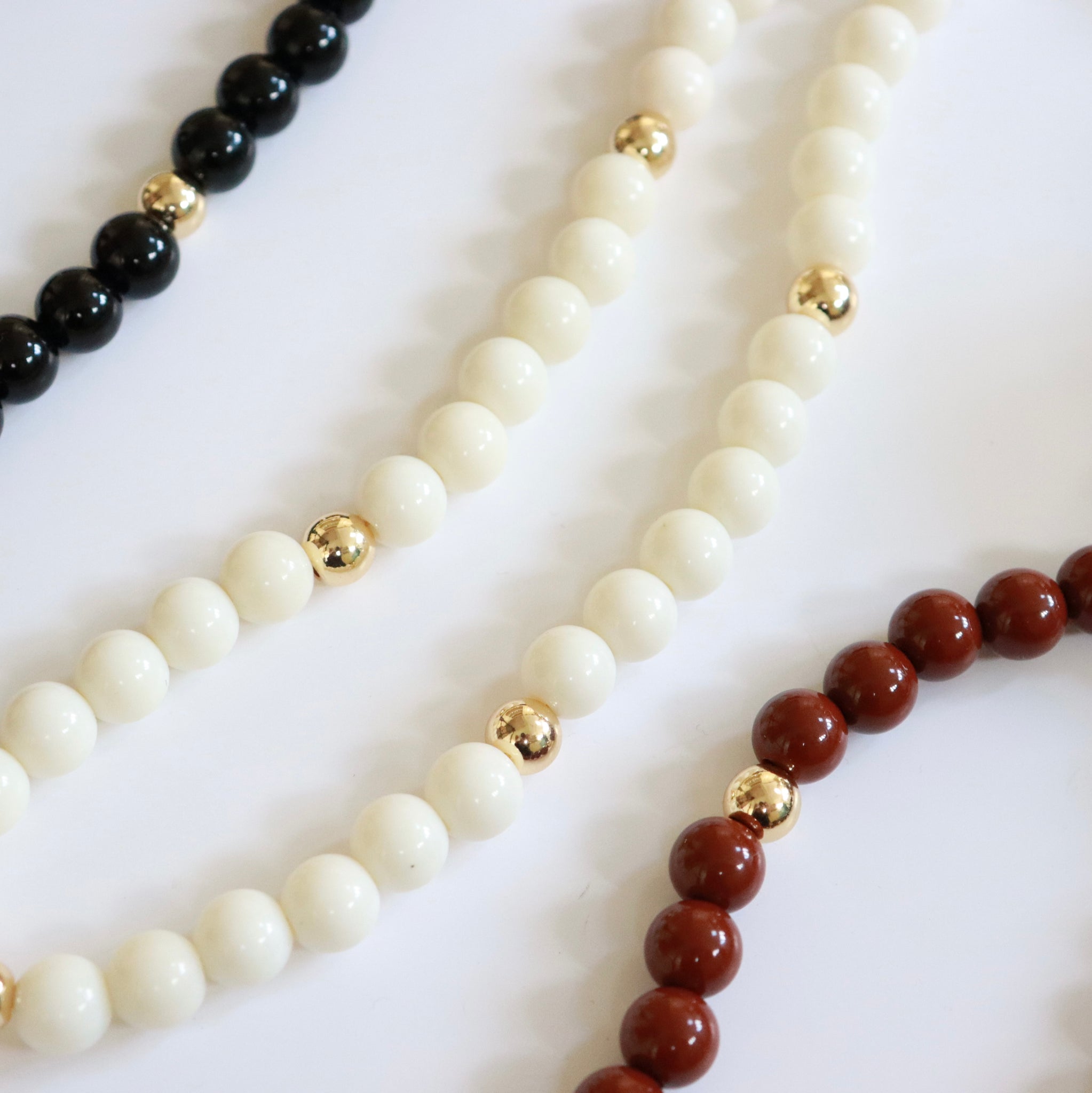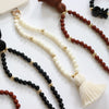 Featuring round acrylic beads, gold plated spacers & a fluffy cotton tassel in choice of colours.